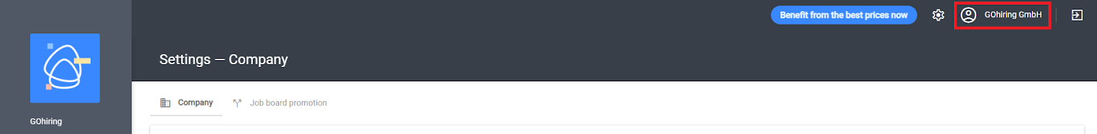 Standardmäßig übernimmt das Multiposting-Tool als Rechnungsempfänger den Namen des buchenden Unternehmens, so wie er oben rechts in der Benutzeroberfläche angezeigt wird.